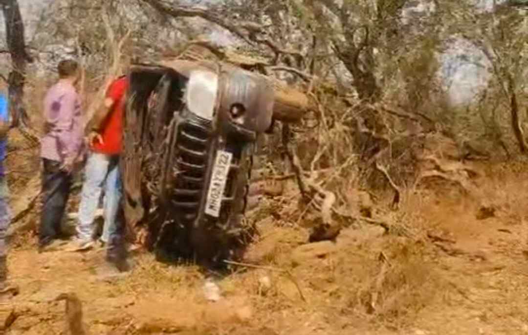 बेळगाव : गांधी चौक रस्त्यावर कार उलटली...
